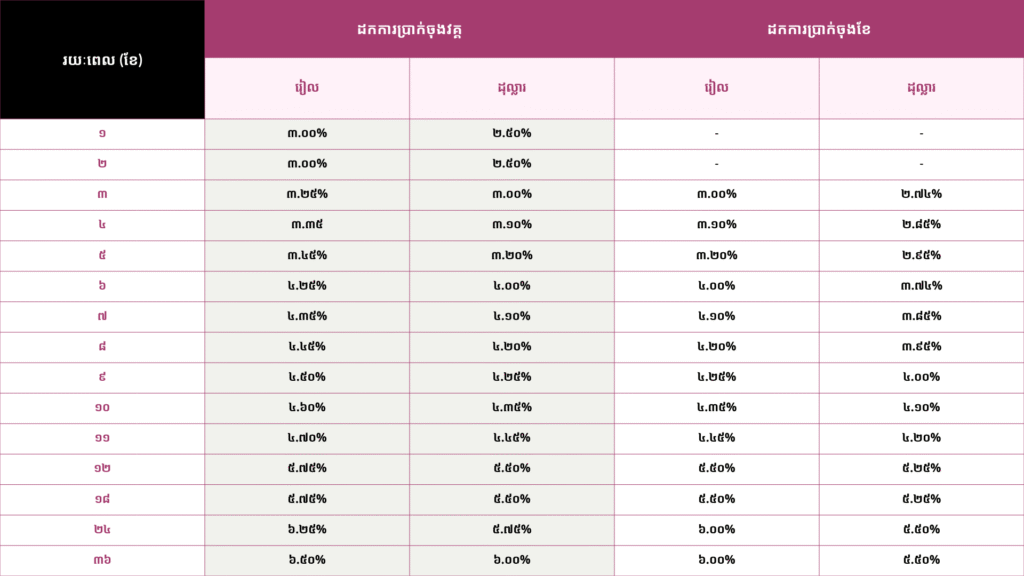 ១ខែរហូតដល់ ៣៦ខែ